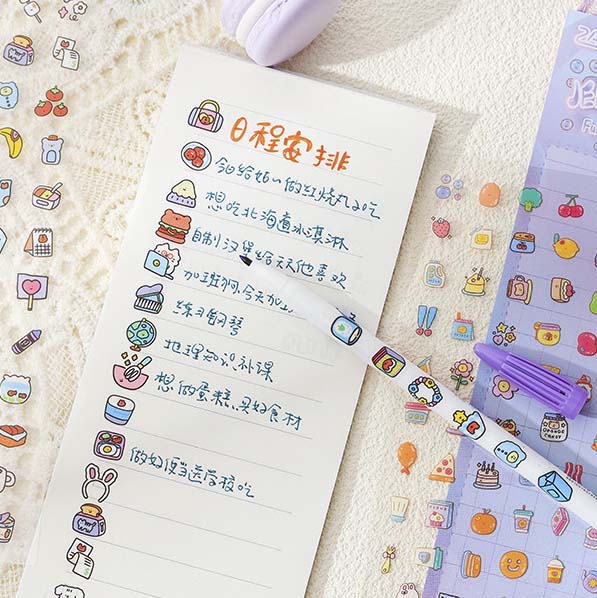 - Pegatinas decorativas con estampados ilustrados pequeños.