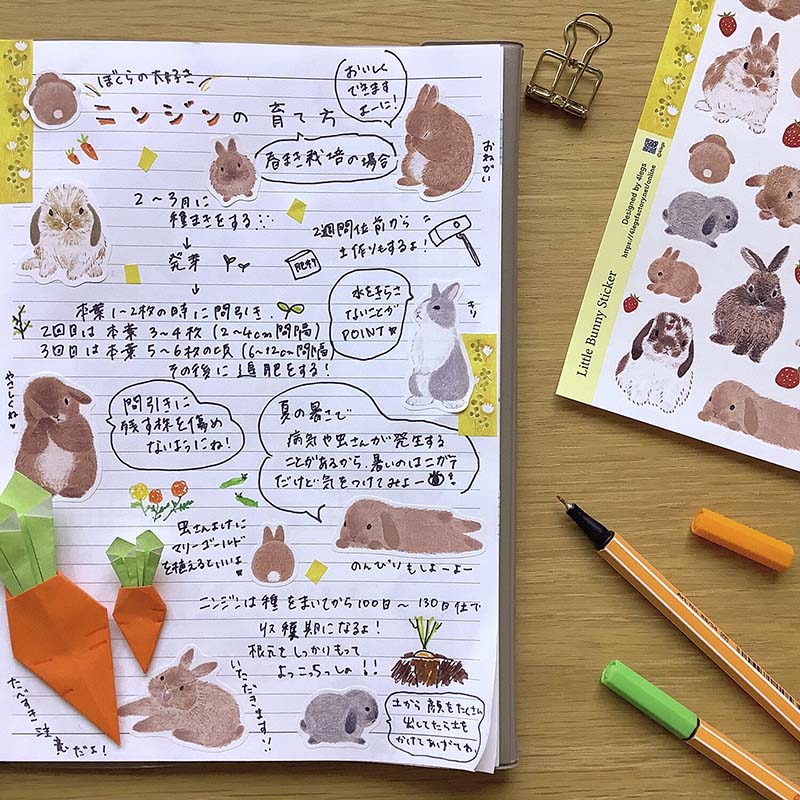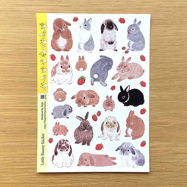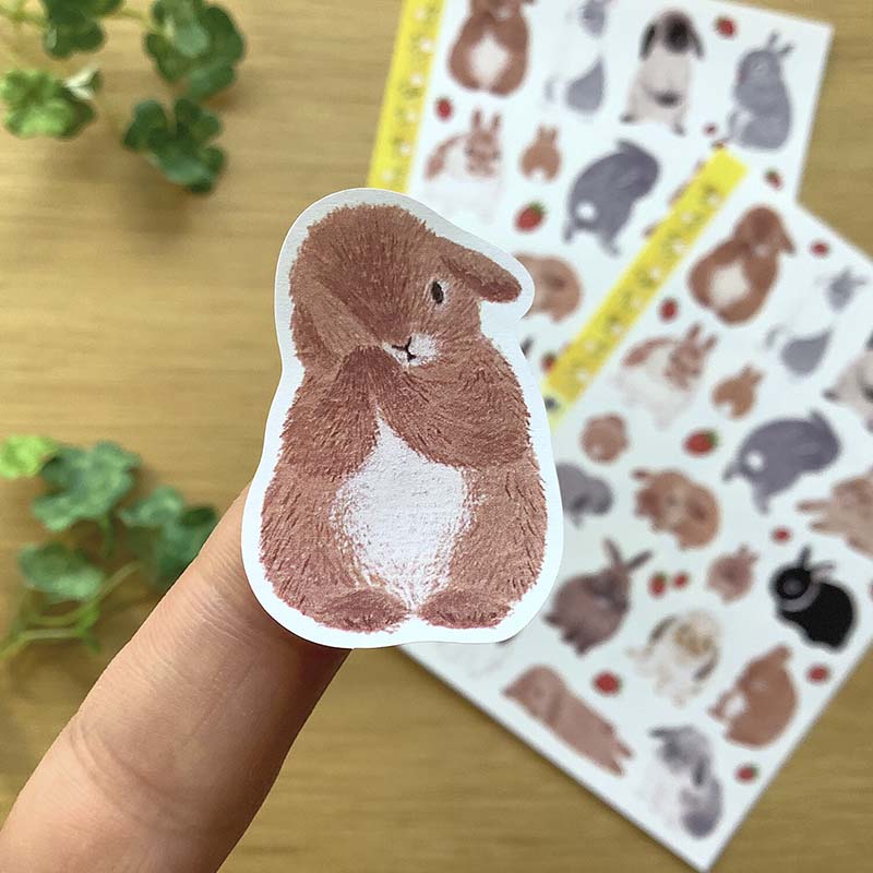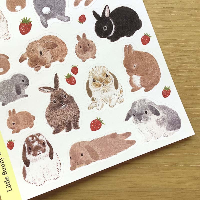 - Pegatinas decorativas con estampado de conejos y fresas.
