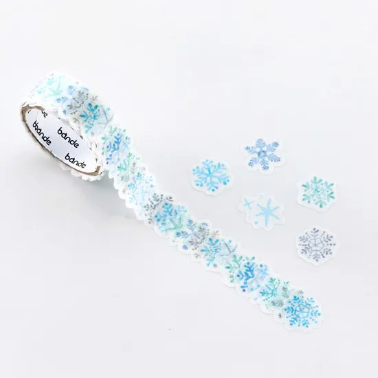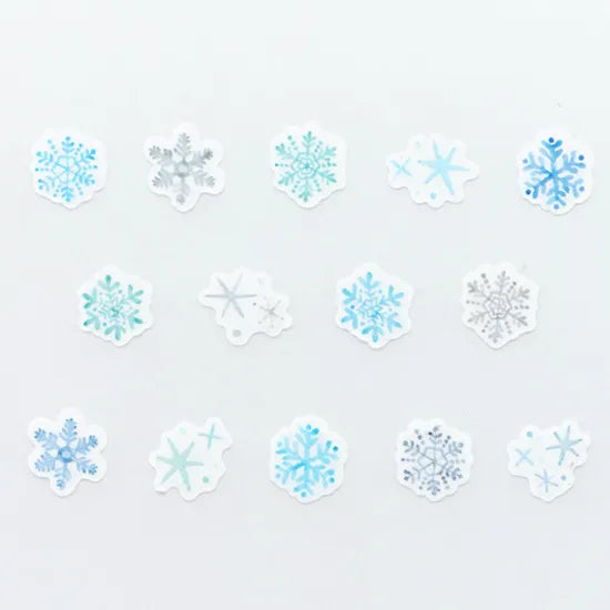 - Pegatinas individuales en formato rollo con estampados de copos de nieve.