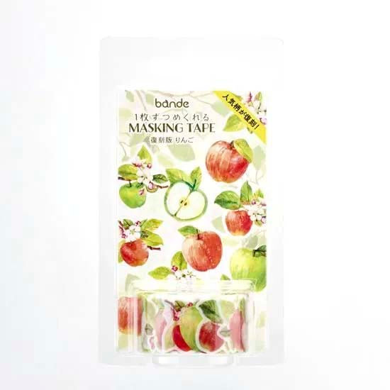 - Pegatinas individuales en formato rollo con estampados de manzanas.
