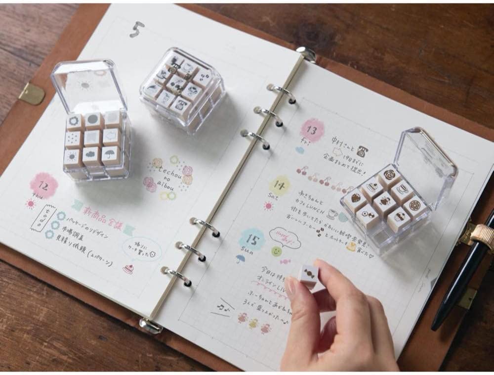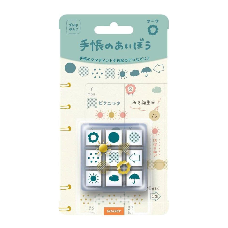 - Set of 9 mini decorative stamps.