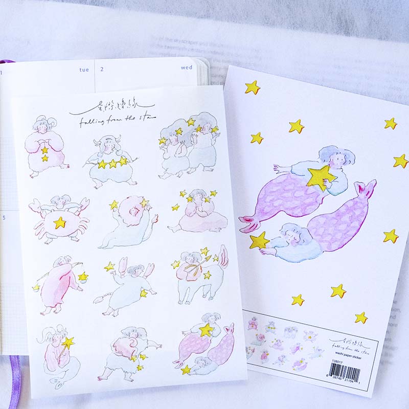 - Pegatinas de papel washi japonés que quedan muy naturales aplicadas sobre fondo de papel.