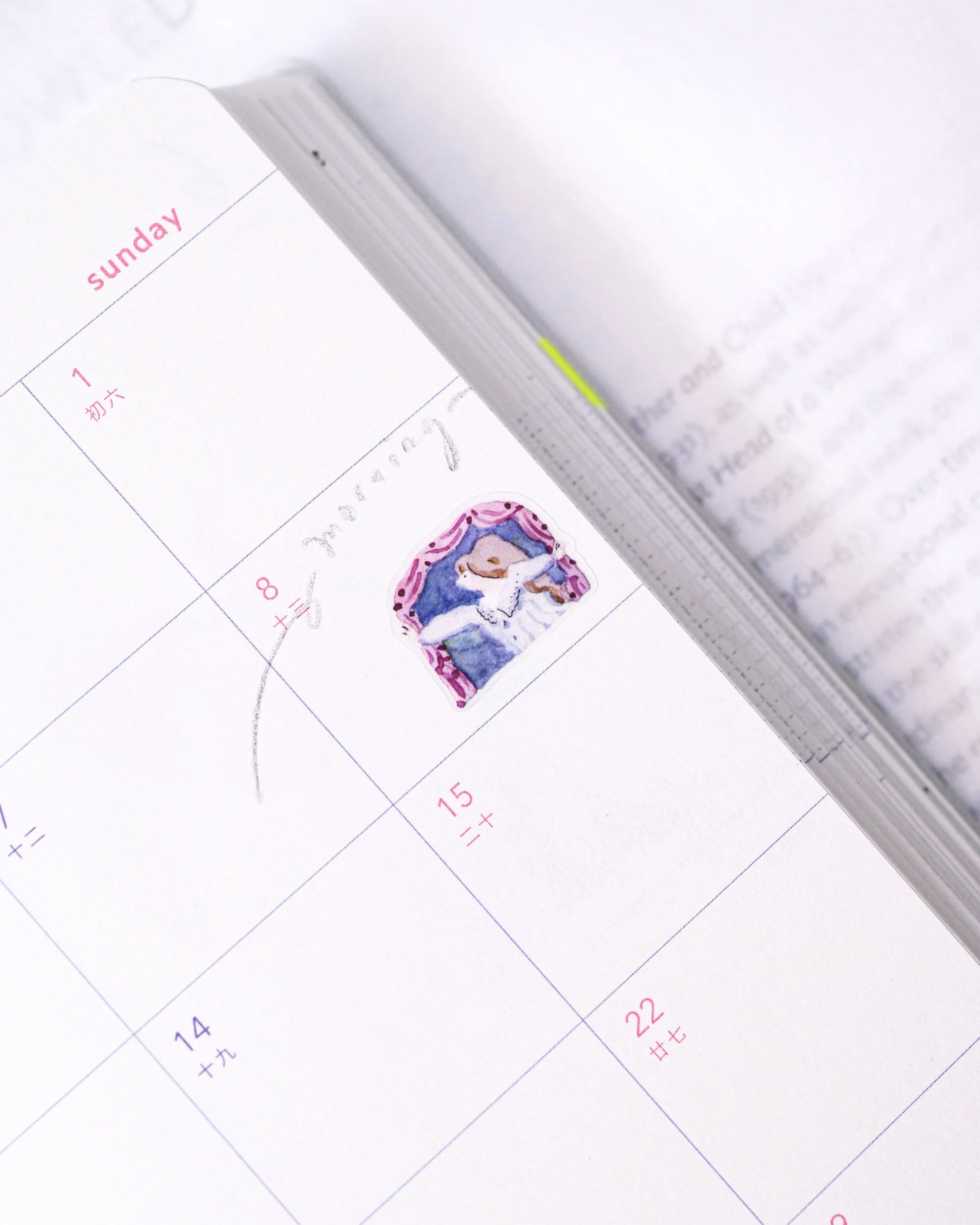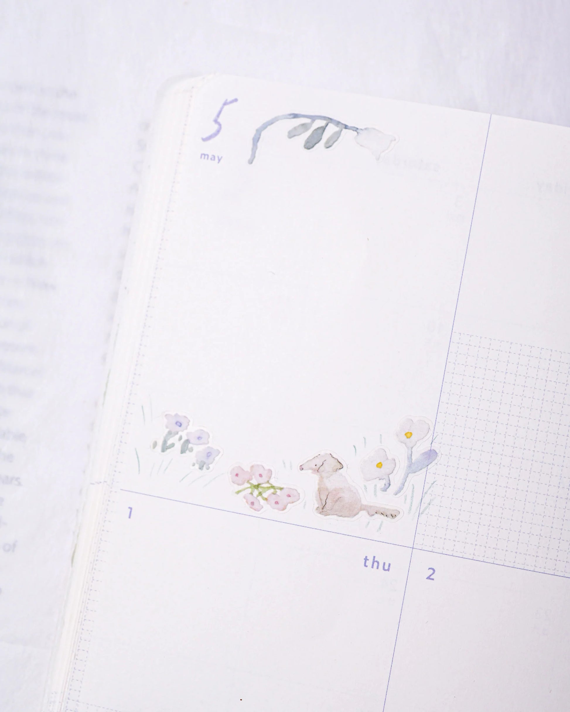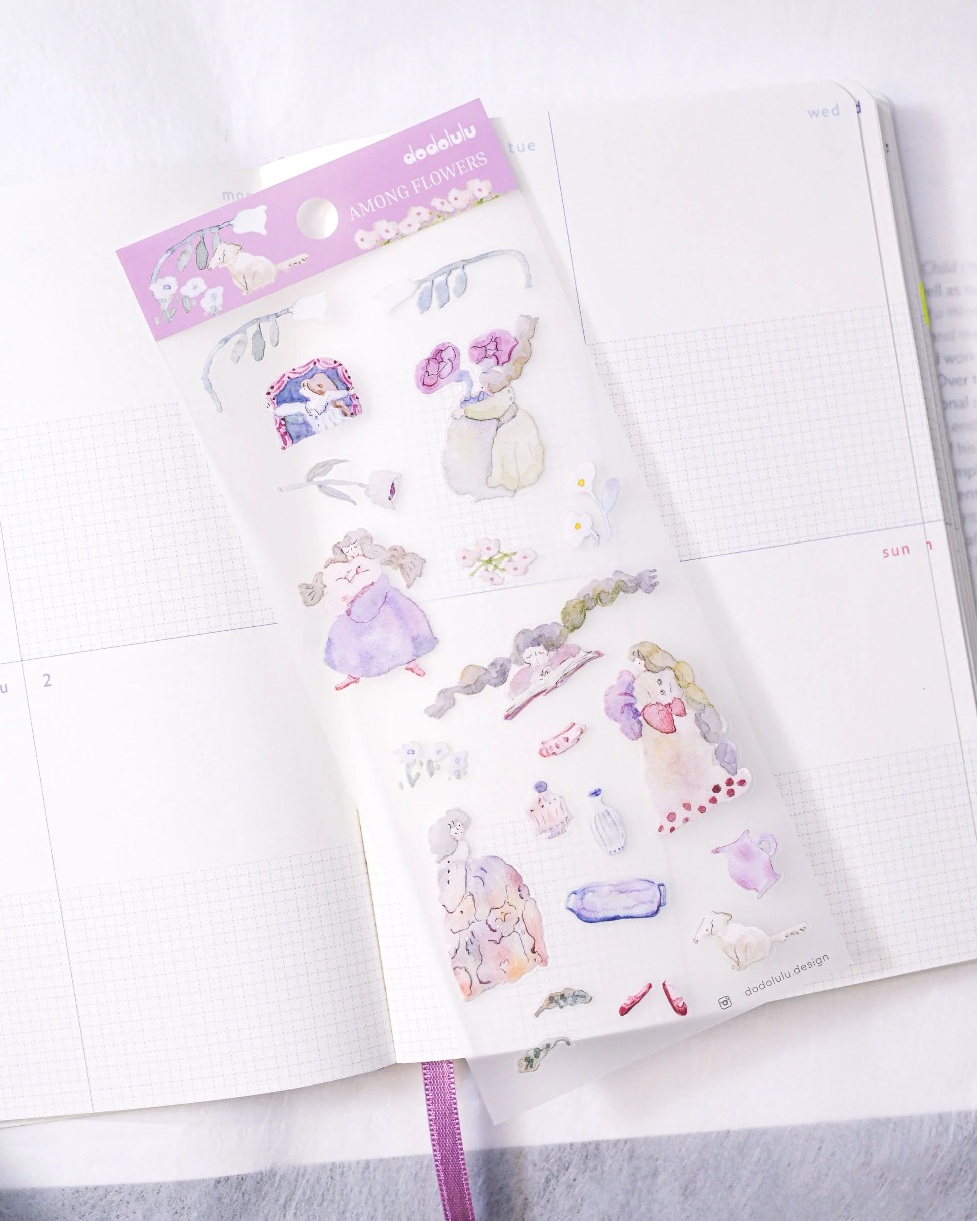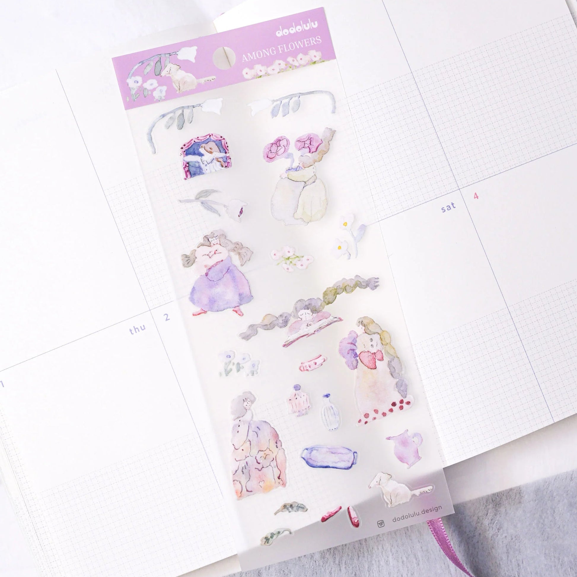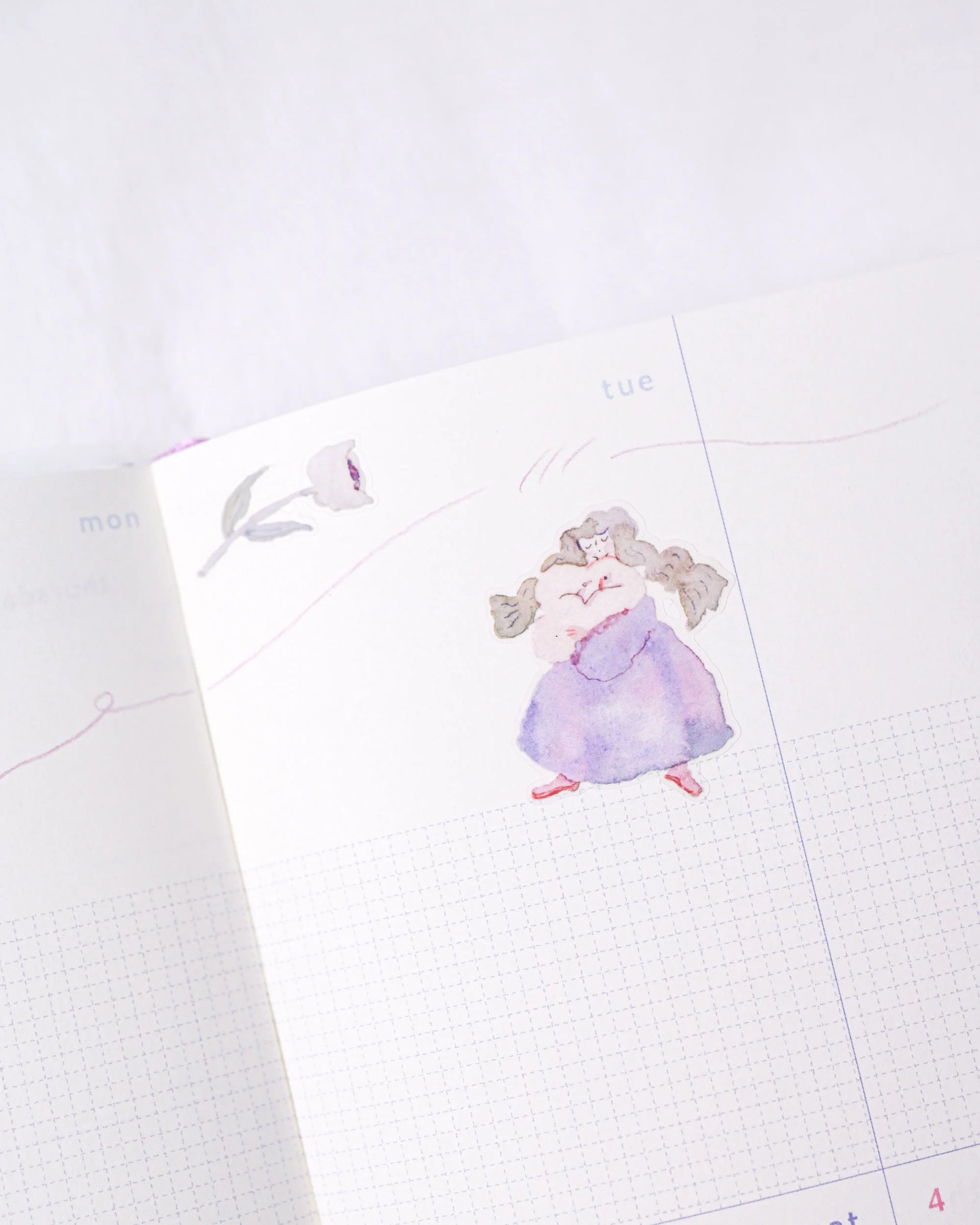 - Hoja de pegatinas decorativas con estampados de la ilustradora hongkonesa Dodolulu.