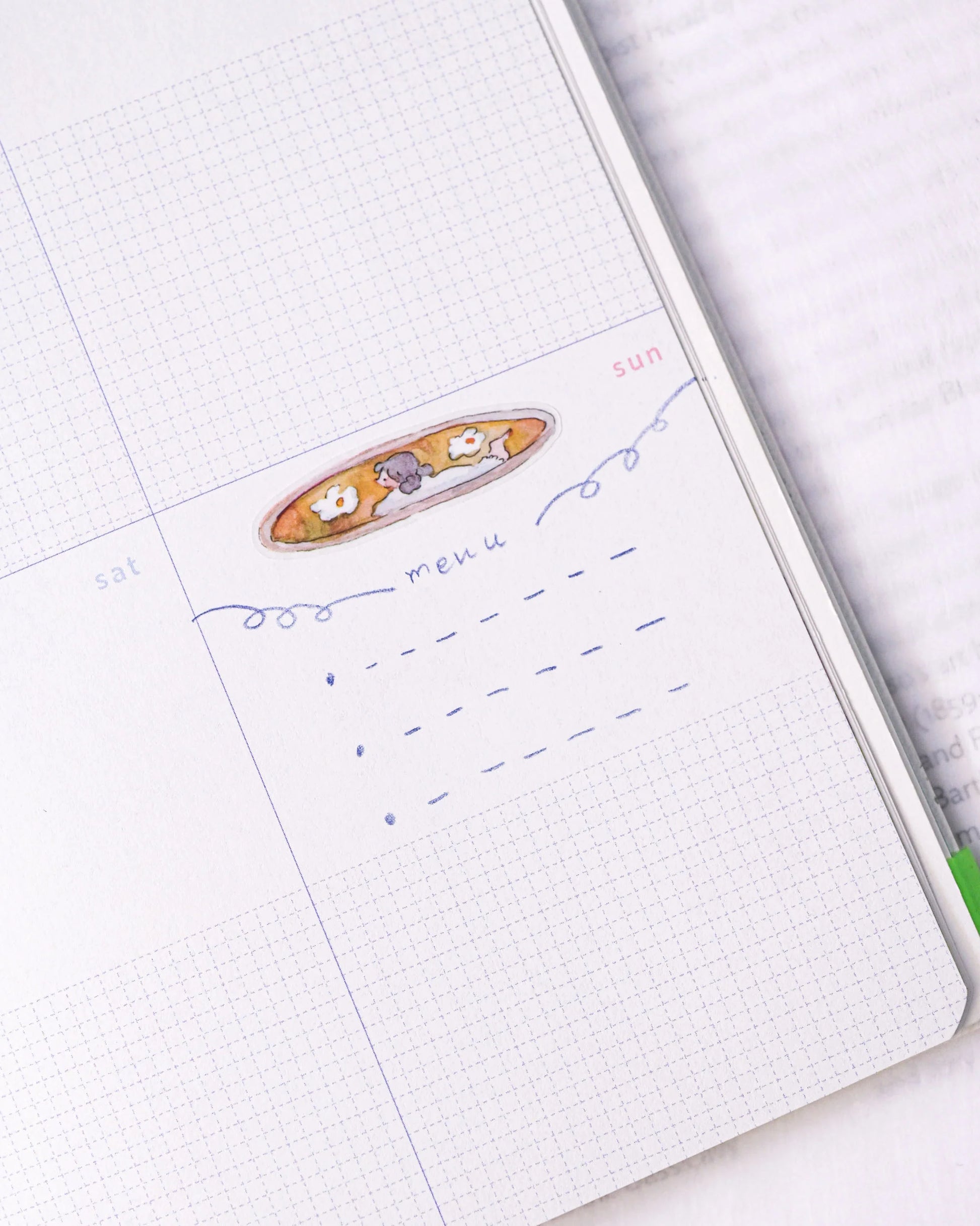 - Hoja de pegatinas decorativas con estampados de la ilustradora hongkonesa Dodolulu.