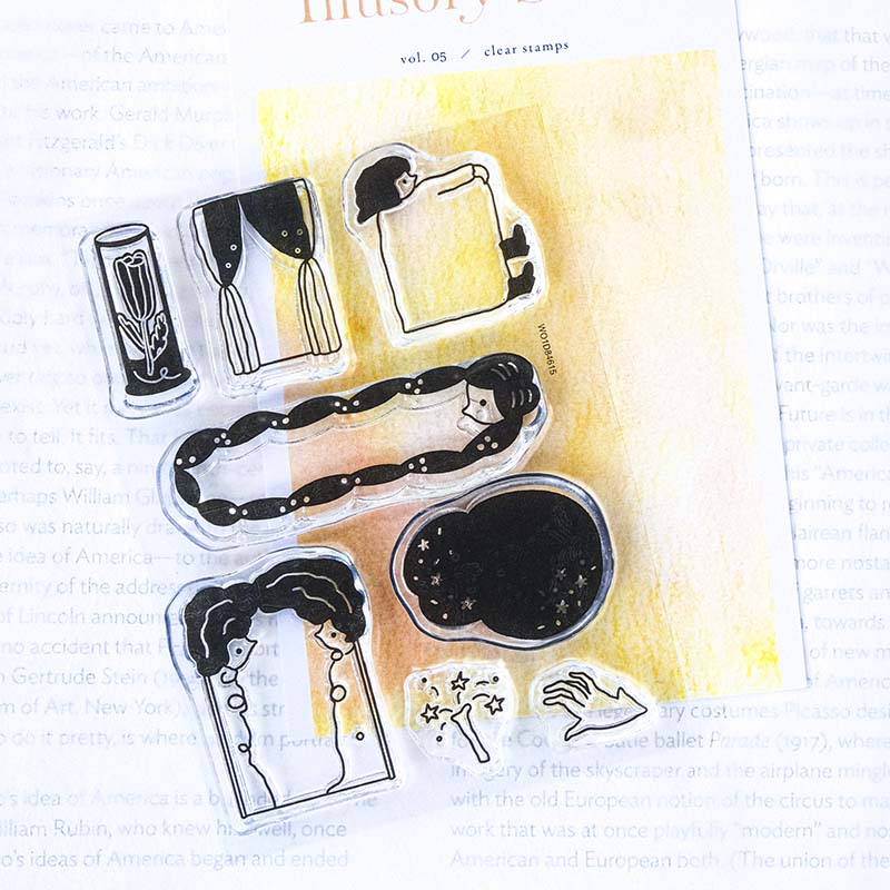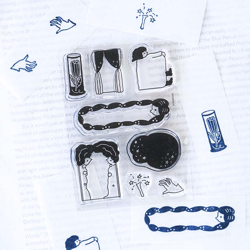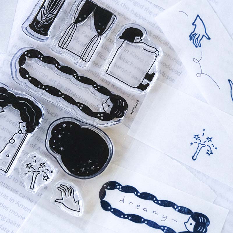 - Set de sellos de silicona con estampados de la ilustradora hongkonesa Dodolulu.