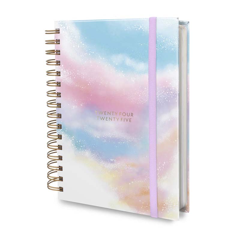 - Elastic band to keep the diary closed and 1 ribbon to mark pages.