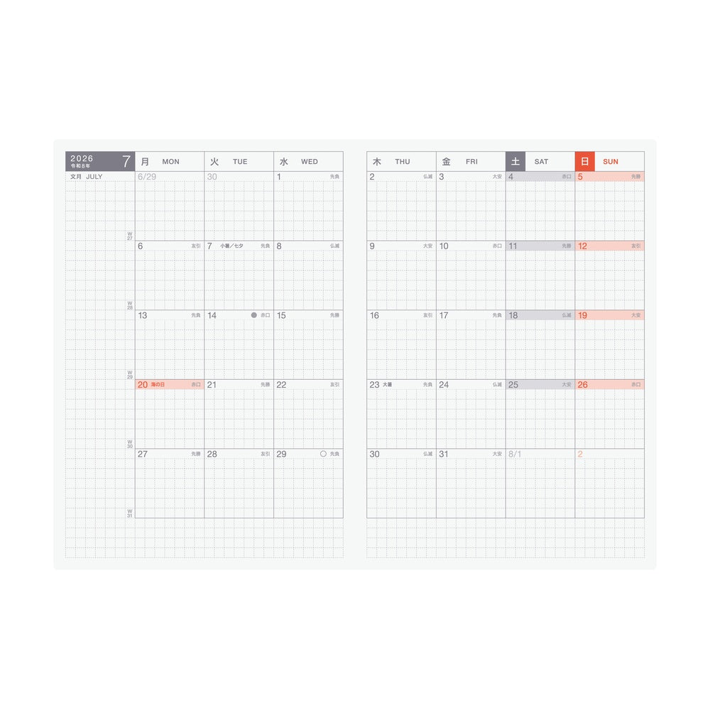 - Agenda interior Hobonichi Techo A6 Original 2026 en JAPONÉS.