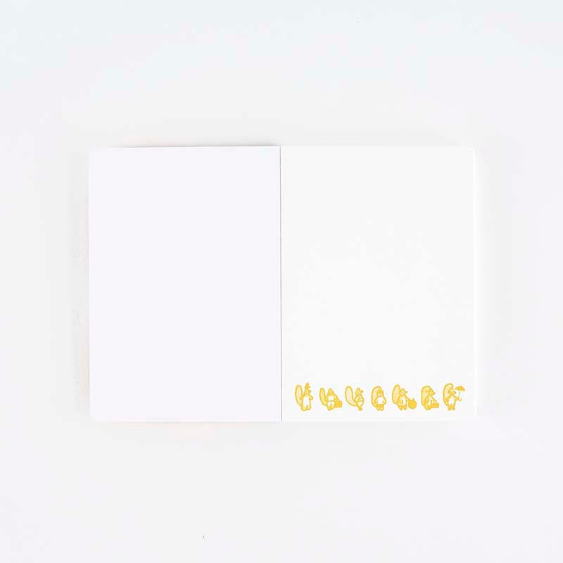 - El papel del interior está en blanco, excepto por una ilustración ligeramente impresa, y las páginas están pegadas en lugar de cosidas, lo que hace que sean muy fáciles de arrancar para hacer listas de la compra o pasar mensajes.