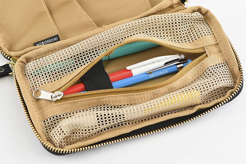 - Drawer Pouch es como una funda Hobonichi Techo, ya que puede guardar muchos artículos a pesar de su tamaño compacto gracias a sus múltiples compartimentos.