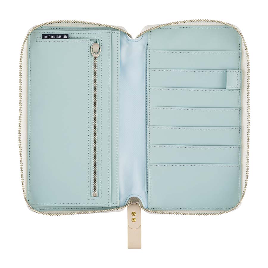 - Its interior has a zippered pocket where you can put papers, notes, stickers and on the other side it has space for cards.