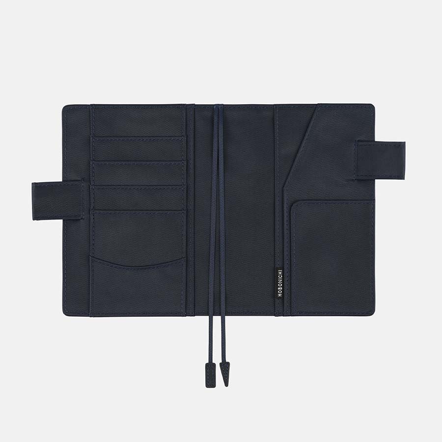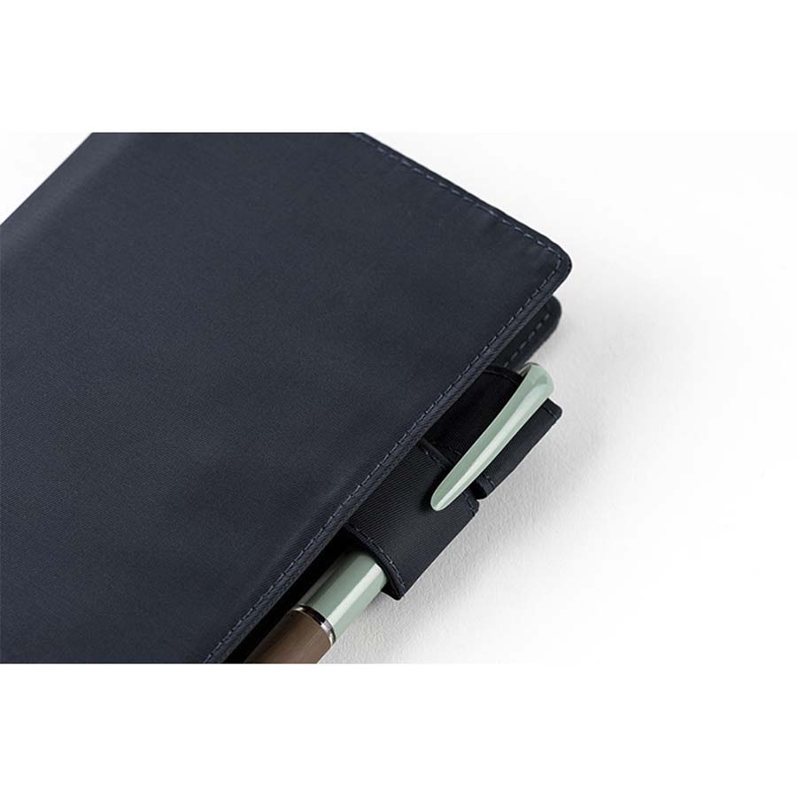 - Hobonichi Techo A6 2025 cover and diary, basic Colors collection: dark blue interior and exterior.