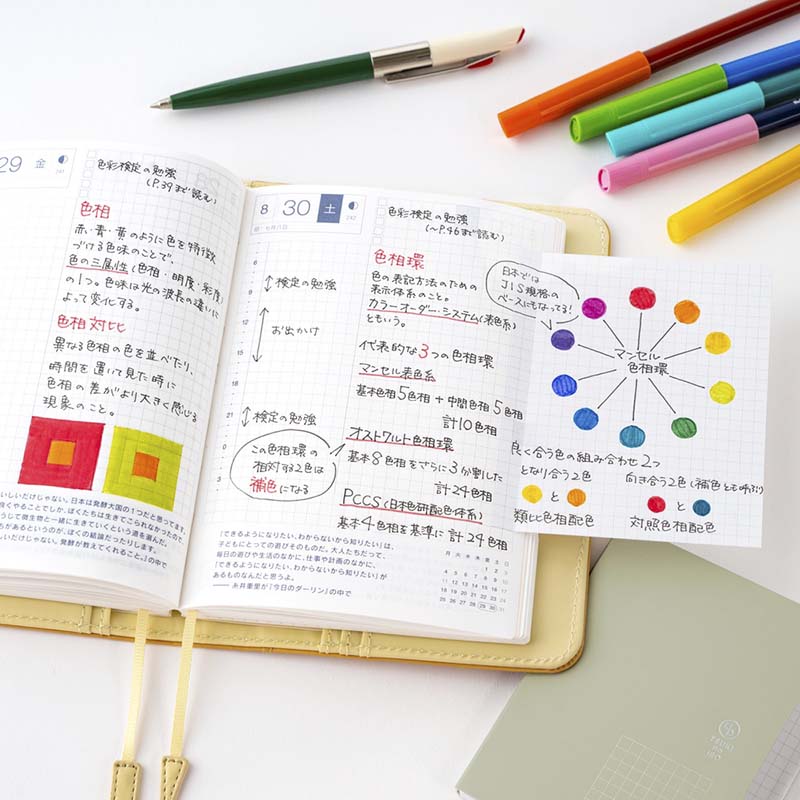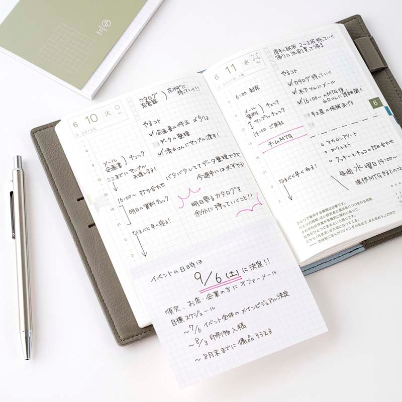 - La cuadrícula está impresa en el mismo color gris que las páginas de notas de Original y Cousin, lo que le permite integrarse perfectamente con tu agenda.
