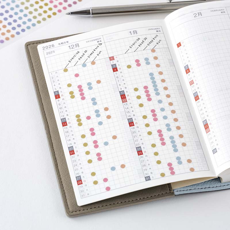 - Estas pegatinas transparentes con puntos están fabricadas con un material PET resistente y transparente, y tienen una forma redonda para que encajen perfectamente en la cuadrícula del papel Hobonichi.