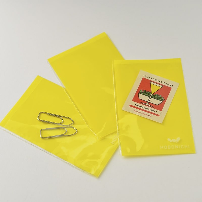 - Clear adhesive envelopes that can be stuck to a page in your Hobonichi and provide a storage pocket.