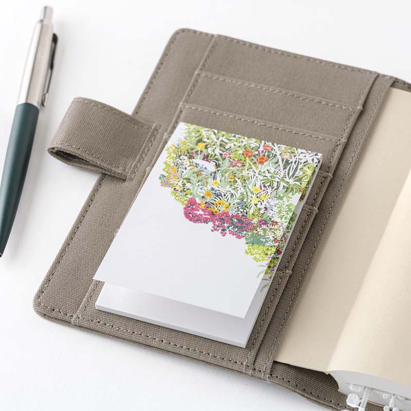 - Puedes deslizar el lomo del bloc en un bolsillo de la funda de Hobonichi para llevarlo contigo a cualquier parte.