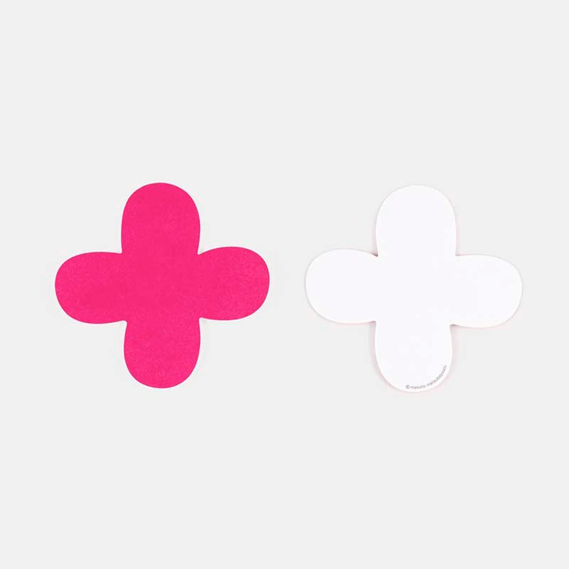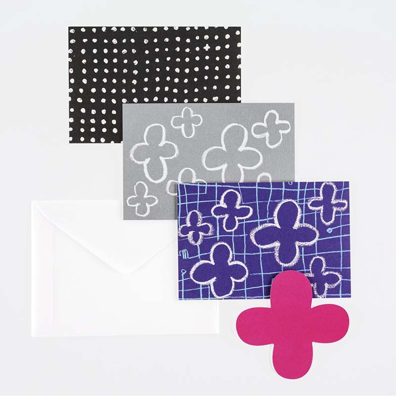 La cuarta es una tarjeta troquelada con forma de flor rosa.