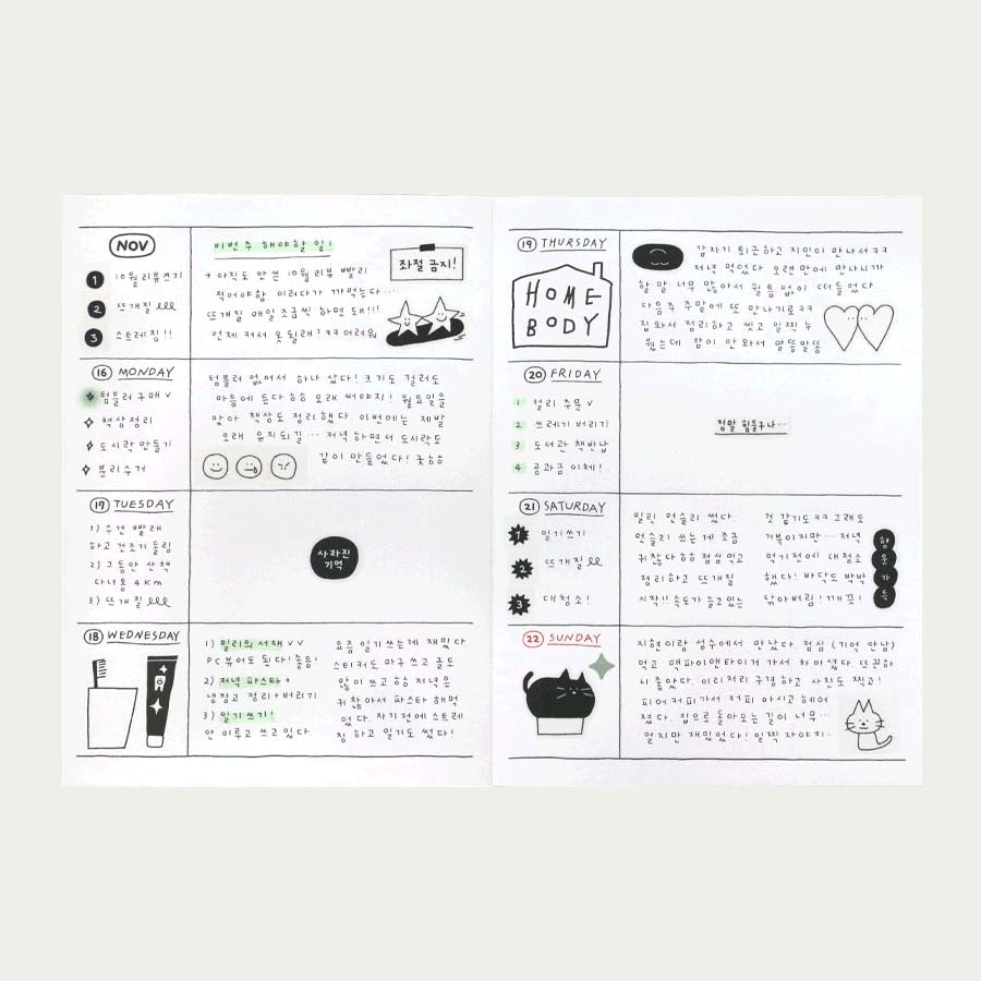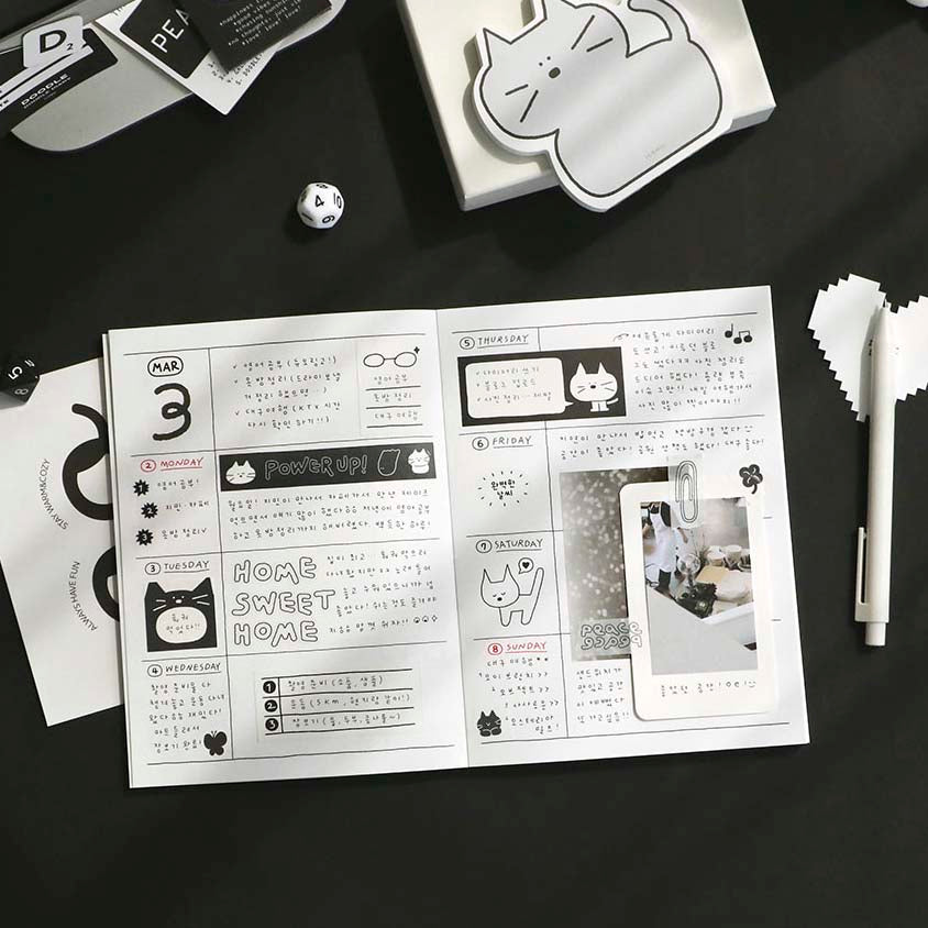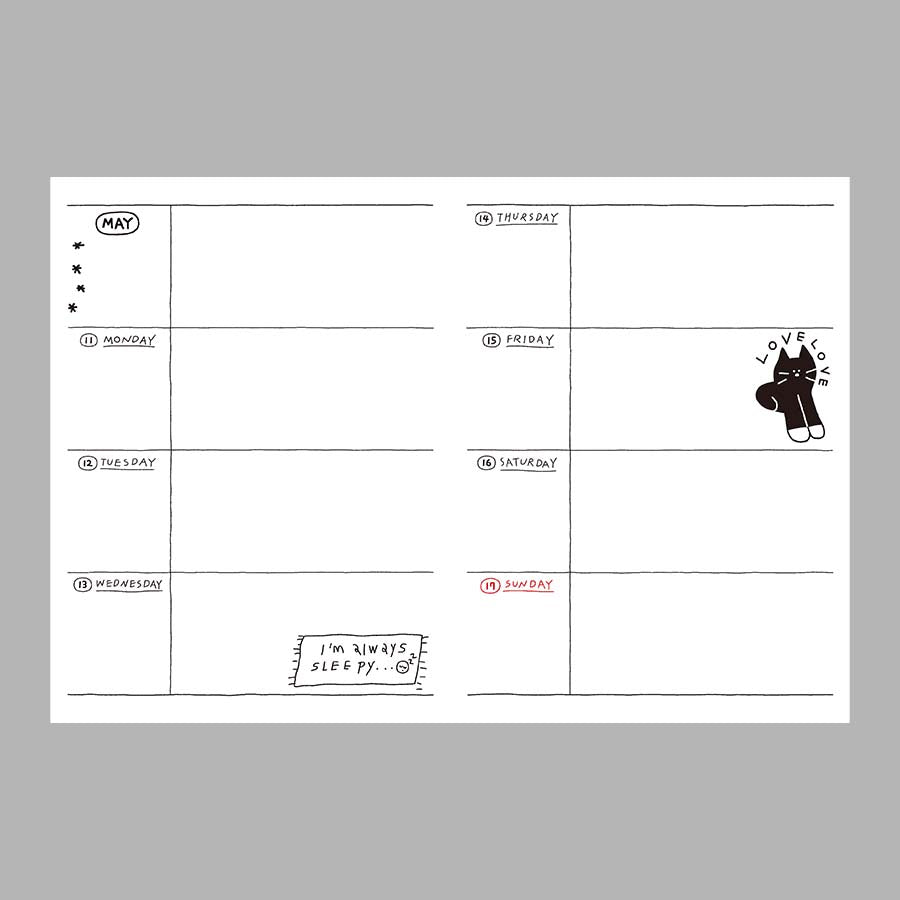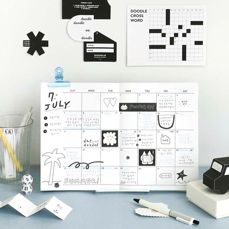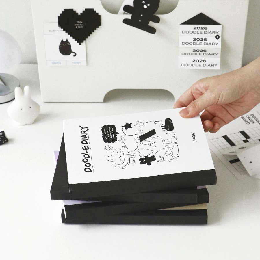 - Agenda con estampados de "garabatos" divertidos en blanco y negro.