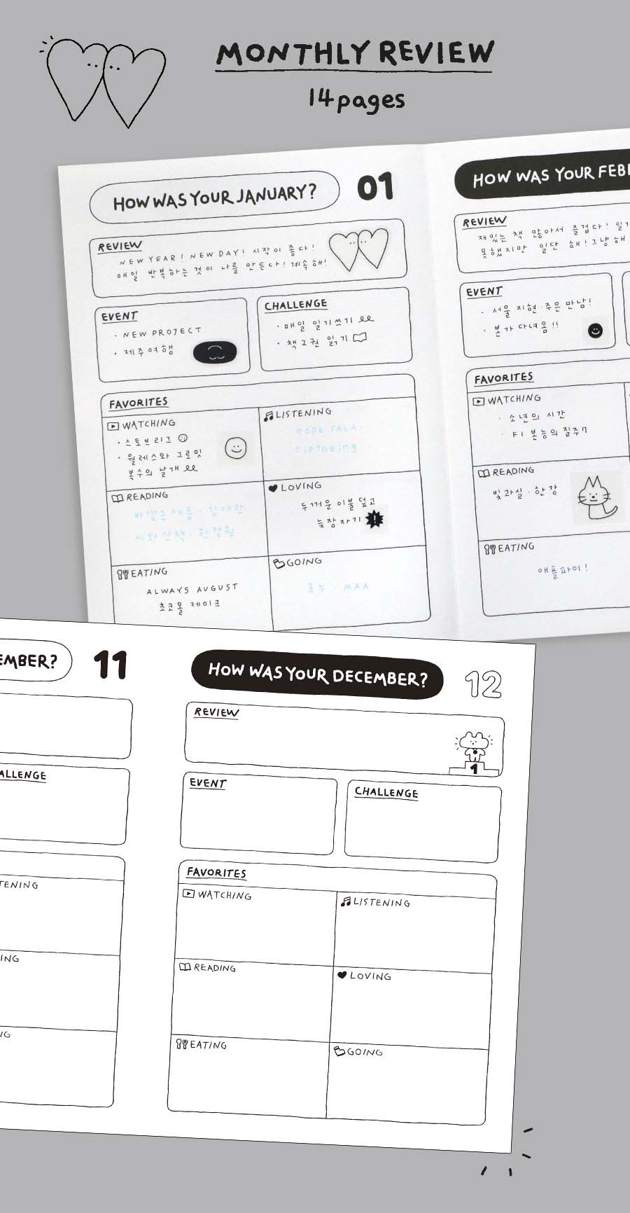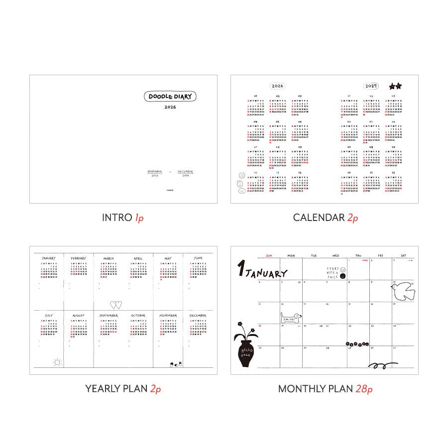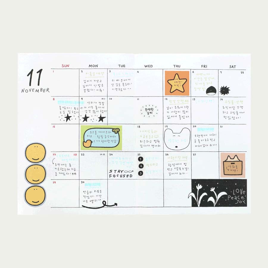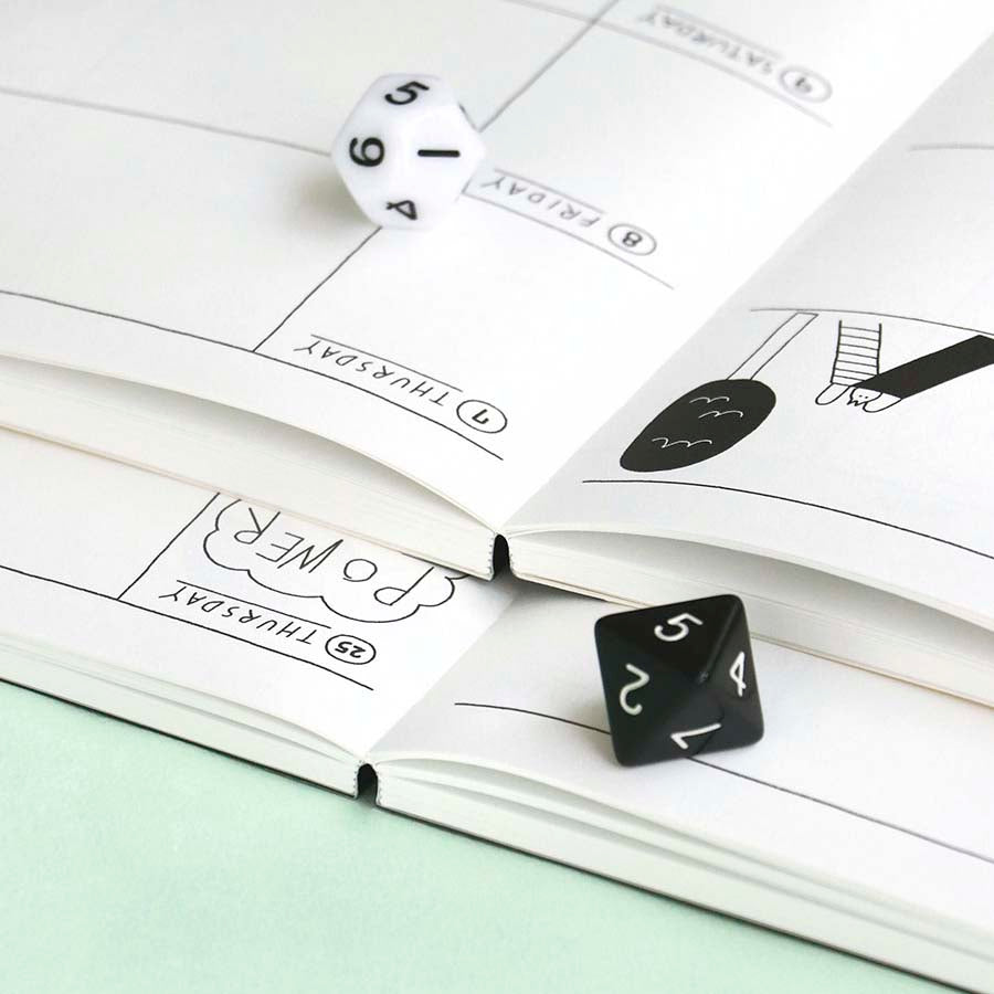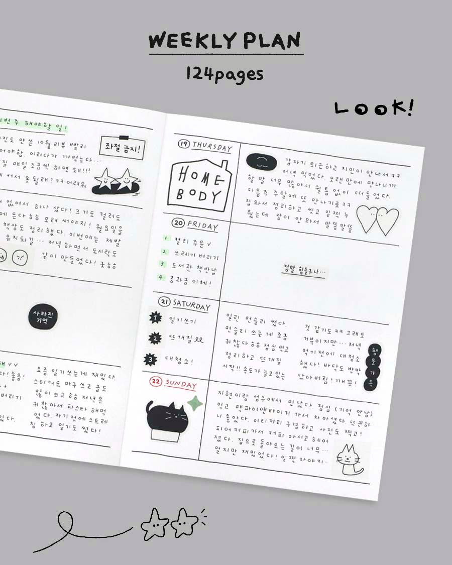- Agenda con estampados de "garabatos" divertidos en blanco y negro.