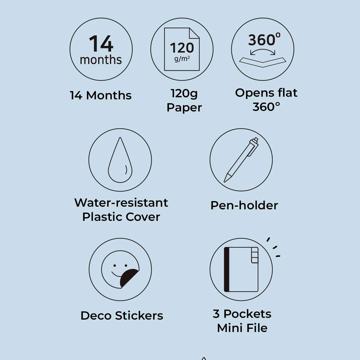 - Encuadernación cosida que permite que la agenda se abra 360 grados con facilidad.