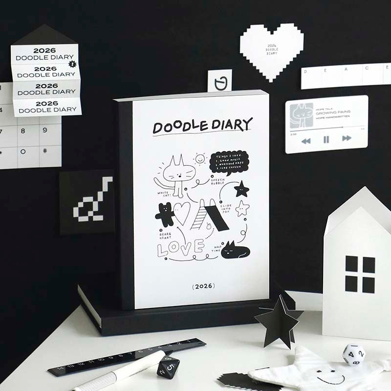 - Agenda con estampados de "garabatos" divertidos en blanco y negro.