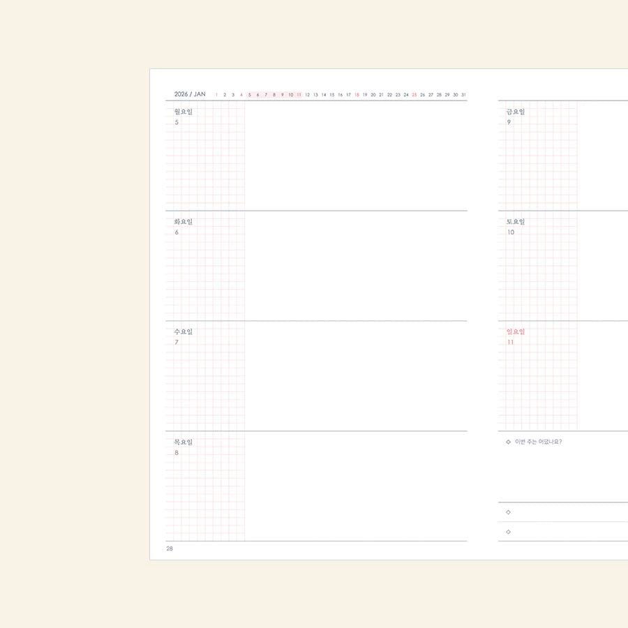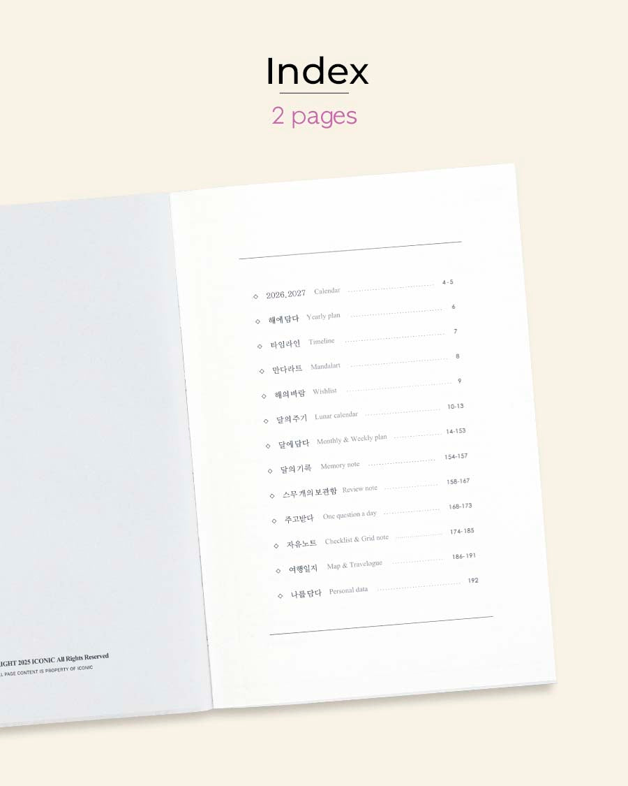 - Agenda coreana semanal Iconic Ilsangjib 2026, con muchas páginas de organización y planificación especial.