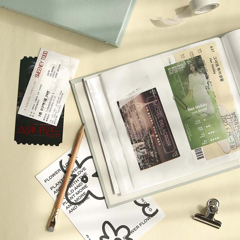 - Álbum con bolsillos espaciosos, permite organizar y guardar hasta 112 entradas de distintos tamaños en 28 páginas de doble cara.