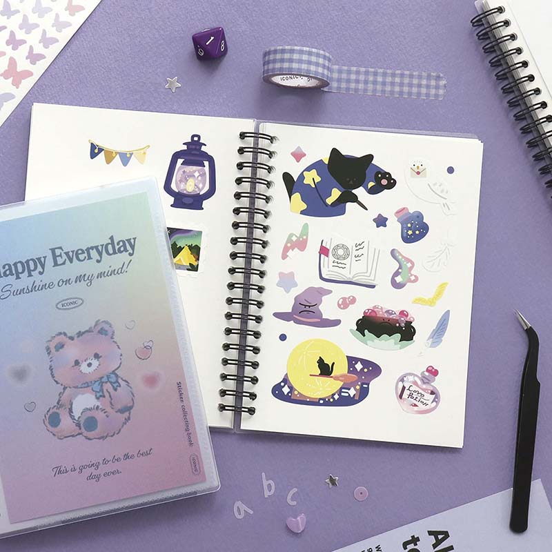 - This album uses the type of paper that is used under the stickers (the part that is left over when using stickers), so you can place stickers and tapes to your liking and use them again when you need.