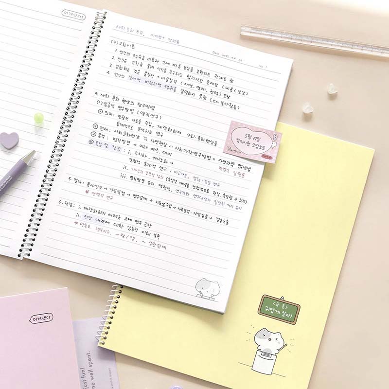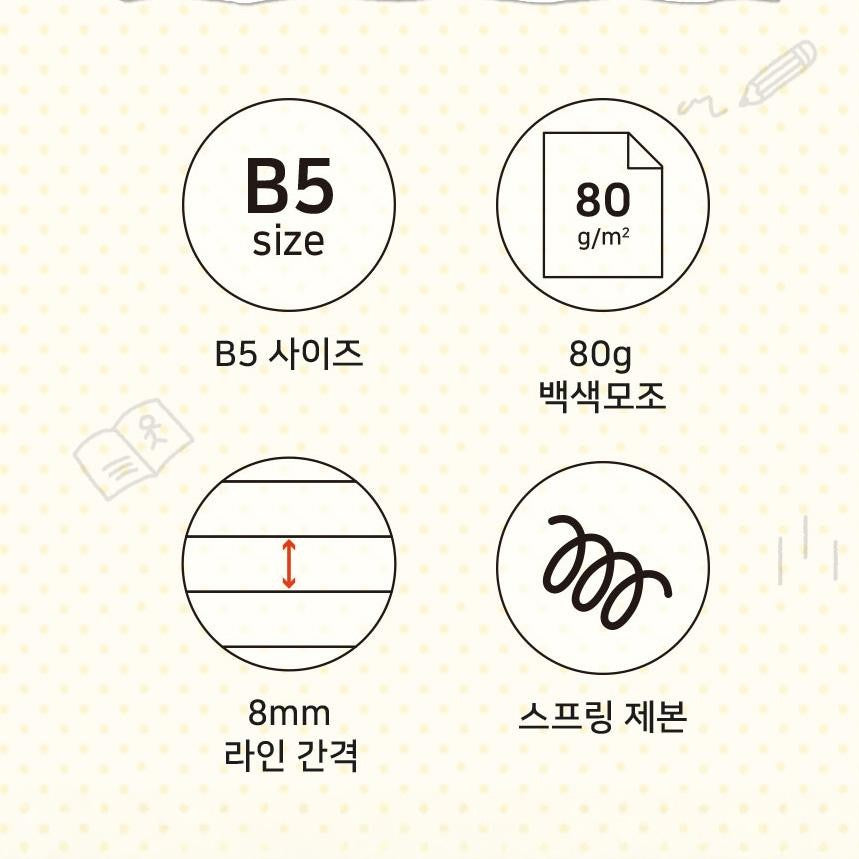 - Cuaderno de tamaño B5 con estampados ilustrados en la portada.