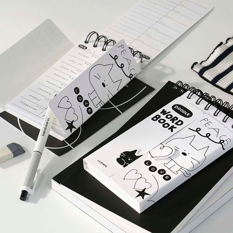 - The cover can cover two parts independently, so you can check the words and their meanings.