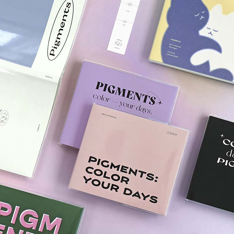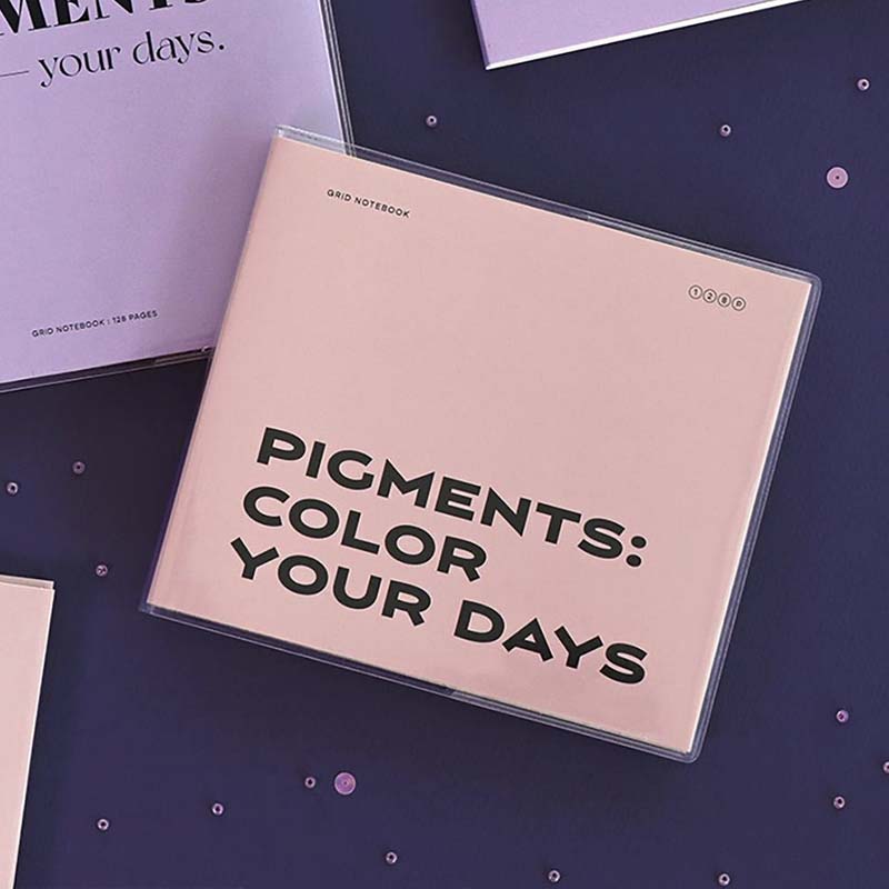 - Notebook of pocket size that combines pages with grid and smooth colors.