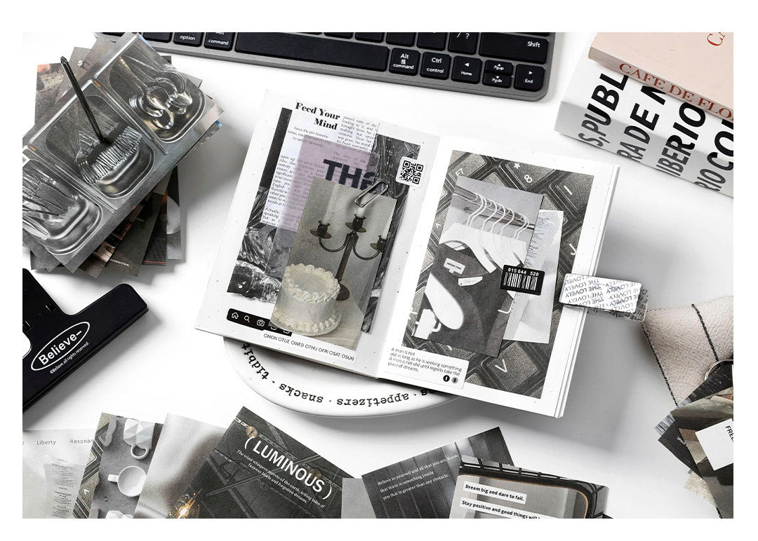 - Papeles Decorativos en formato librito con estampados fotográficos.