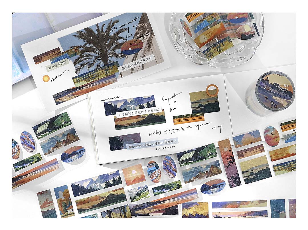 Infeel.me | Pegatinas en Rollo Mountain And Sea Meet A Soft Golden Afterglow