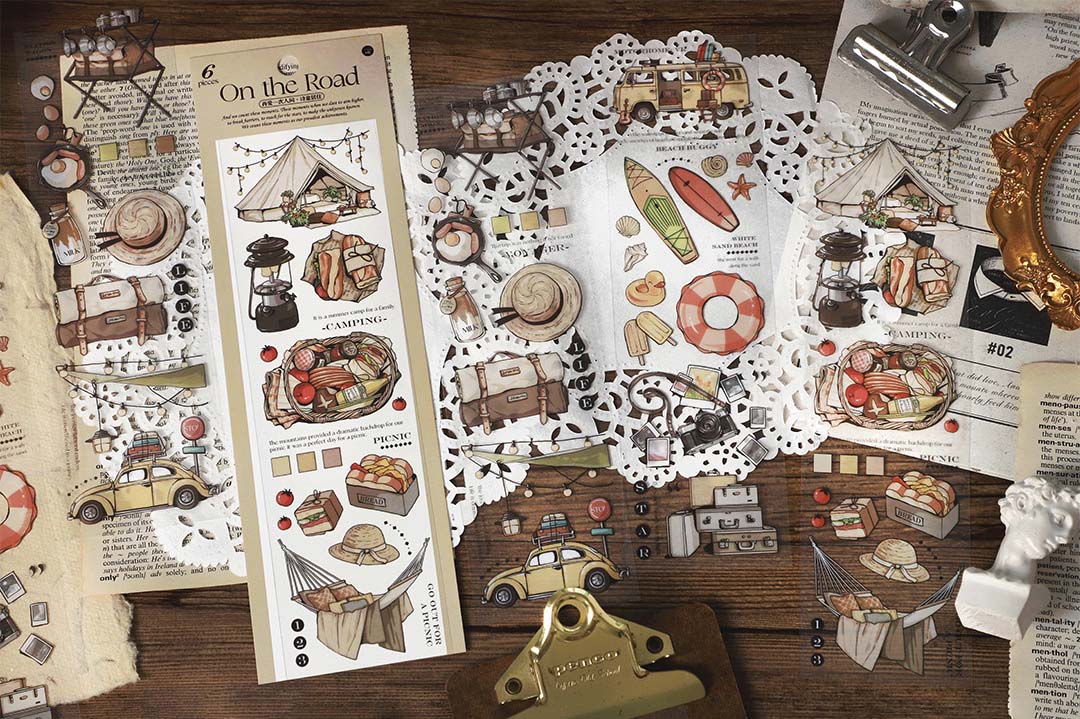 - Set de 6 hojas de pegatinas con estampados ilustrados.