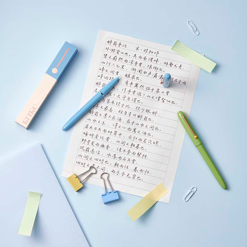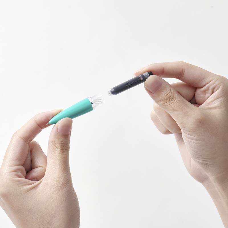- It comes in a box with 2 replacement cartridges (black ink) and an ink converter.