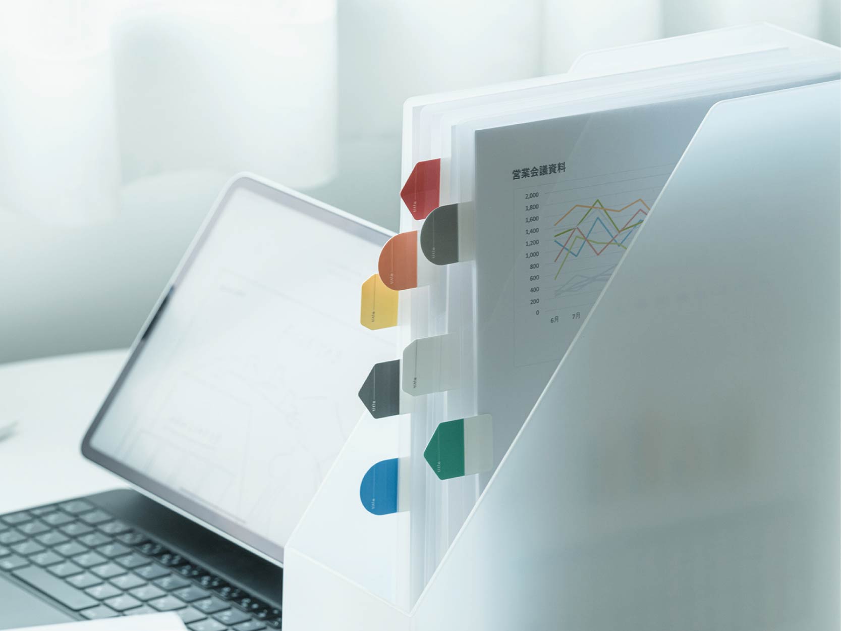 - Marcadores o pestañas de índice de material plástico rígido y adhesivos.