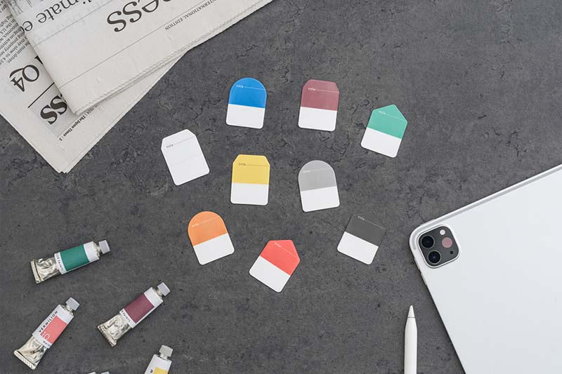 - Marcadores adhesivos con formas geométricas.