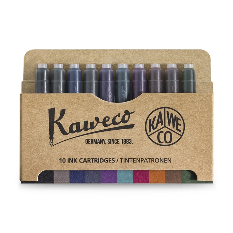 - Box with an assortment of 10 ink cartridges for Kaweco fountain pens.