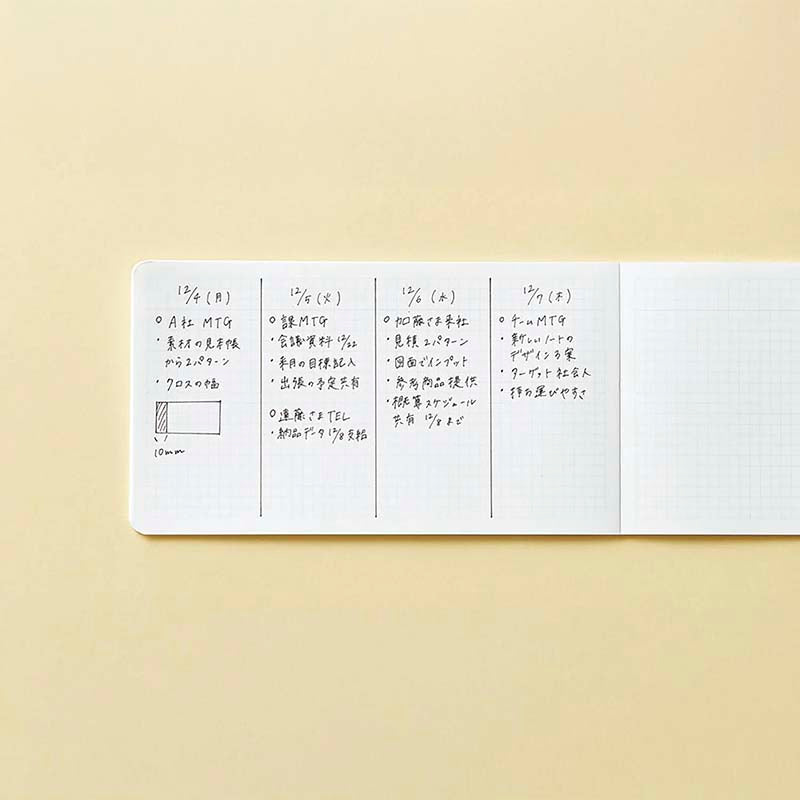 - Interior de cuadrícula de 3,5 mm con guías que dividen cada hoja en 4 secciones horizontales y 2 verticales, ideal para listas, planning y notas por bloques.