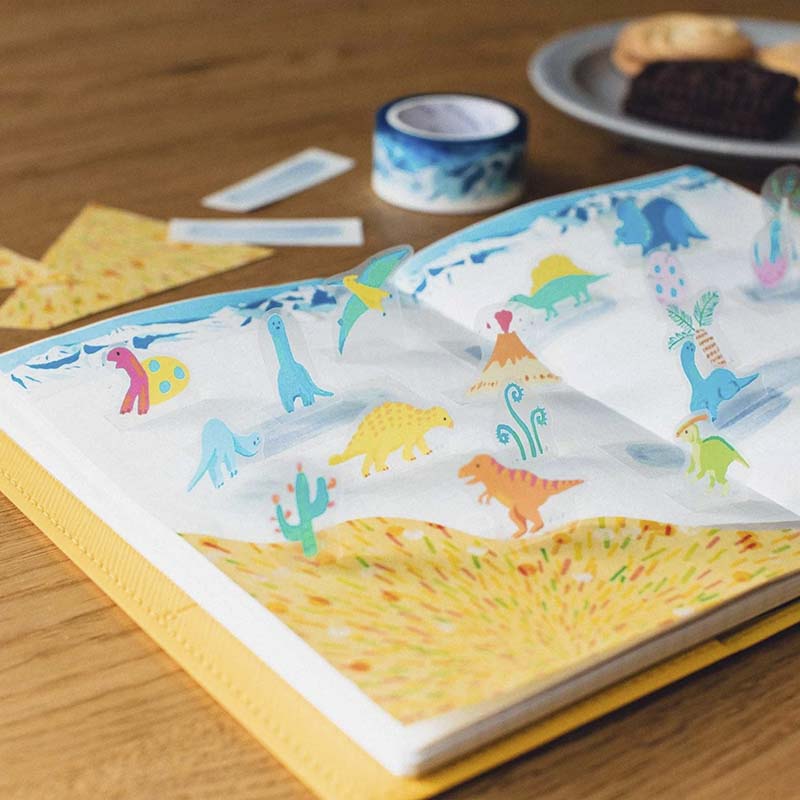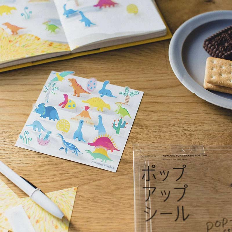 - Pegatinas decorativas POP Up con estampado de dinosaurios.
