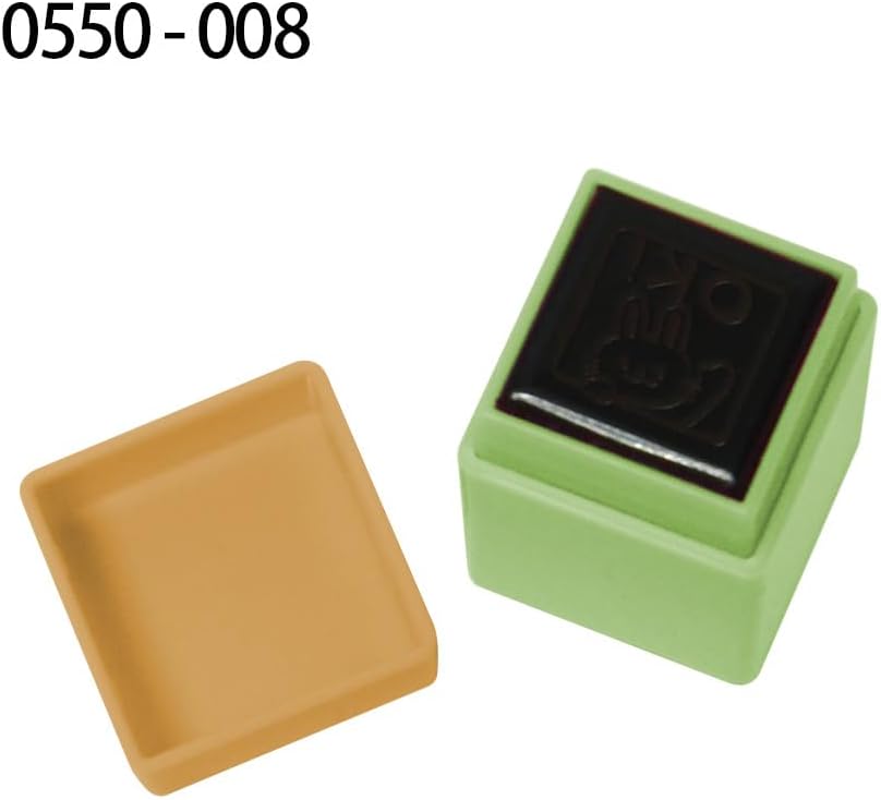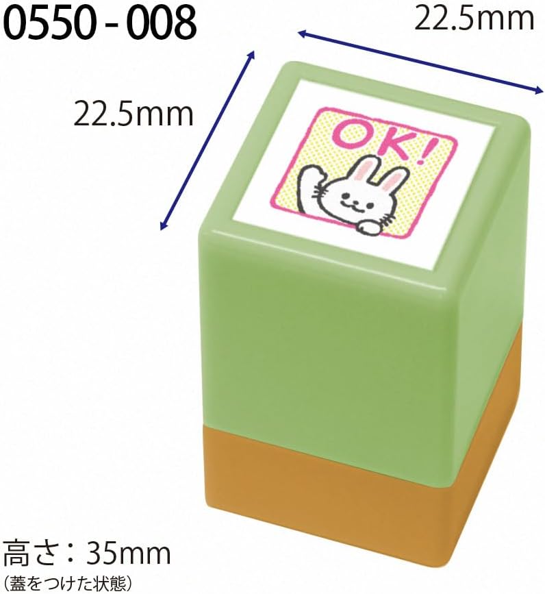 - Sello entintado con estampado de conejo y el texto OK.