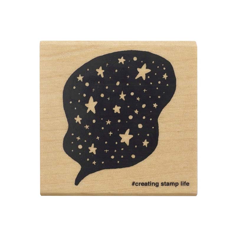 - Sello con estampado de un bocadillo de diálogo con fondo de estrellas.