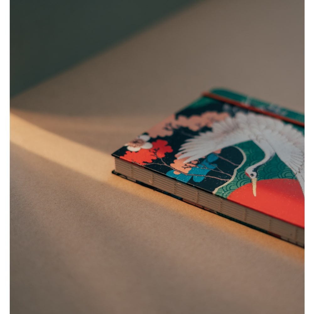 - Japanese handcrafted (sewn) binding with exposed spine that allows the notebook to easily open 180 degrees and stay open.