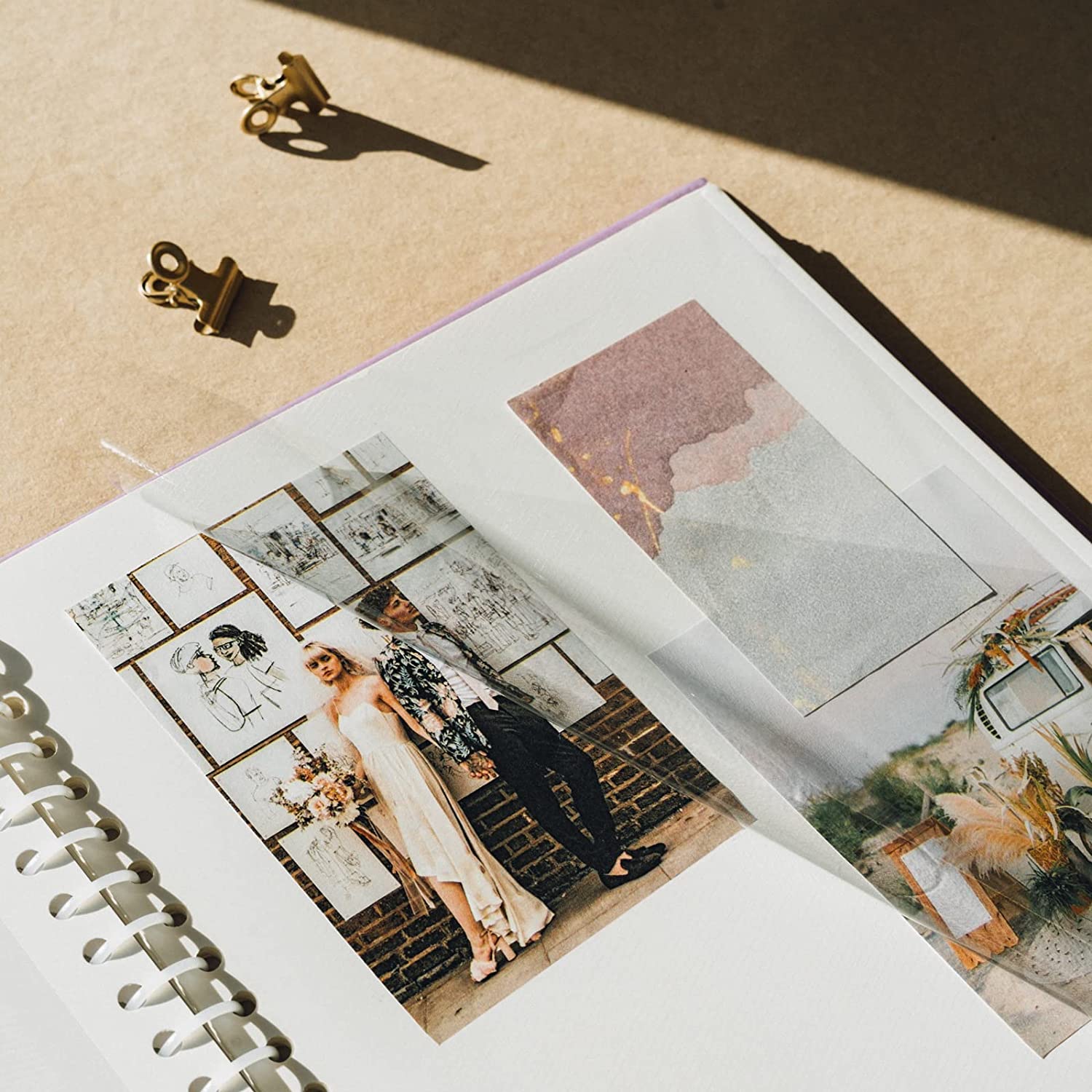 - To place the photos you just have to lift the plastic attached to the page, place the photos and re-hook the plastic on the photos.