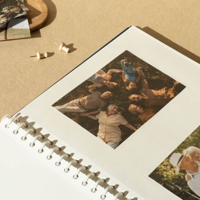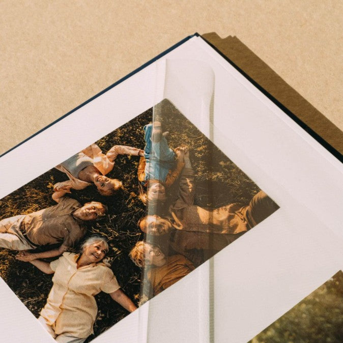 - To place the photos, simply lift the plastic attached to the page, place the photos and re-attach the plastic over the photos.