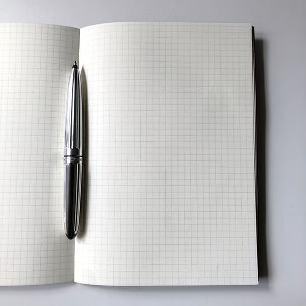 - A5 size notebook with grid interior.