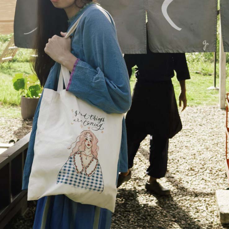 - Bolsa Tote Bag con estampado de la ilustradora taiwanesa La Dolce Vita.
