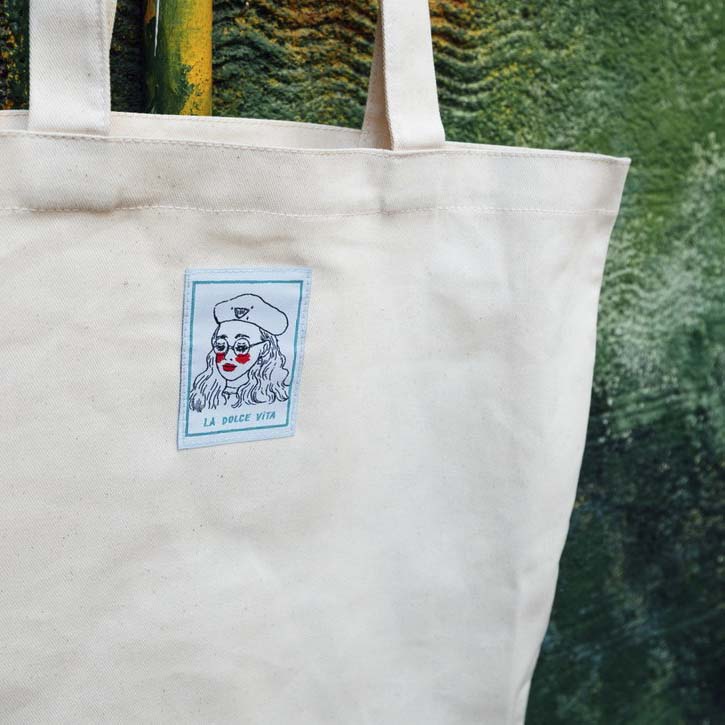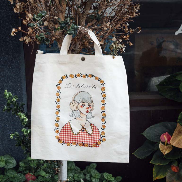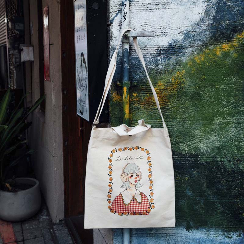 - Bolsa Tote Bag con estampado de la ilustradora taiwanesa La Dolce Vita.