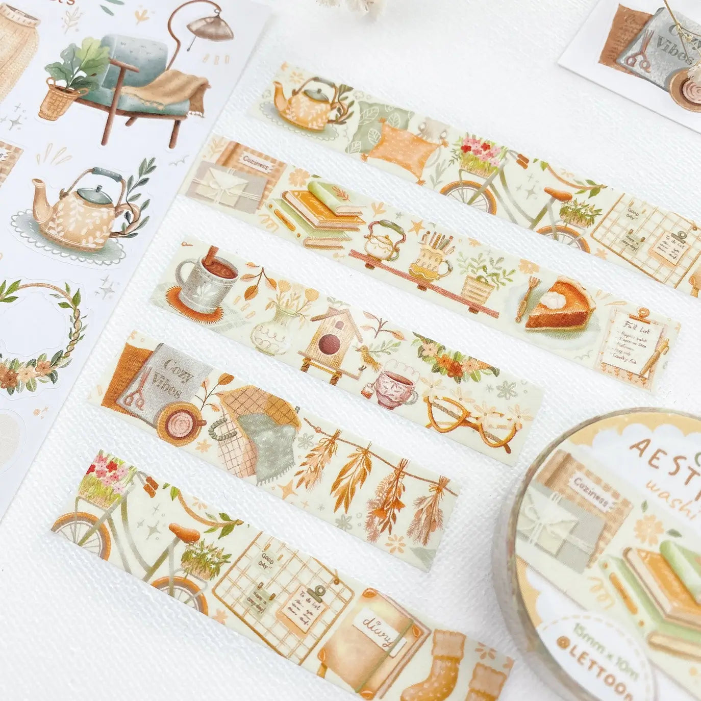 - Washi Tape decorative adhesive tape with cozy style daily prints.
