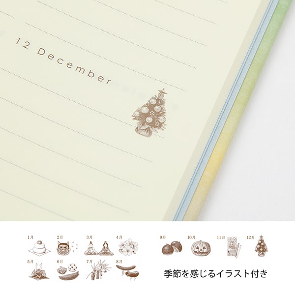 - With illustrations reminiscent of the seasons, this format allows you to enjoy the changes of the year while reviewing your days.