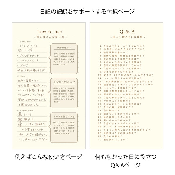 - It also includes a "Questions and Answers" section to help you when you can't think of anything to write, many examples, and other supplementary pages to support your writing.